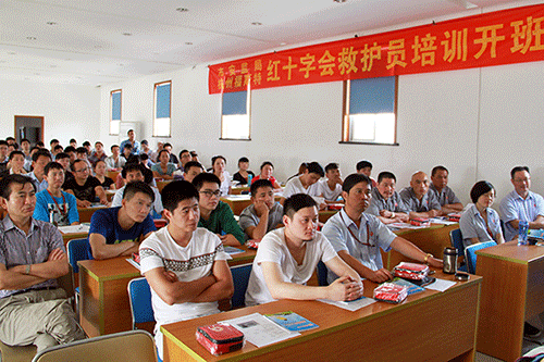 The main content of the train is cardiopulmonary resuscitation (CPR), trauma care, accident and emergency first aid, use the combination of theory and actual operation. The teacher from Red Cross especially and systematicly emphasize the importance of first-aid, cardiopulmonary resuscitation, the four skills of trauma care(stop bleeding, bandage, fixation, handling) etc. During the training process, every one practices the whole progress of cardiopulmonary resuscitation and used the skills of trauma care.