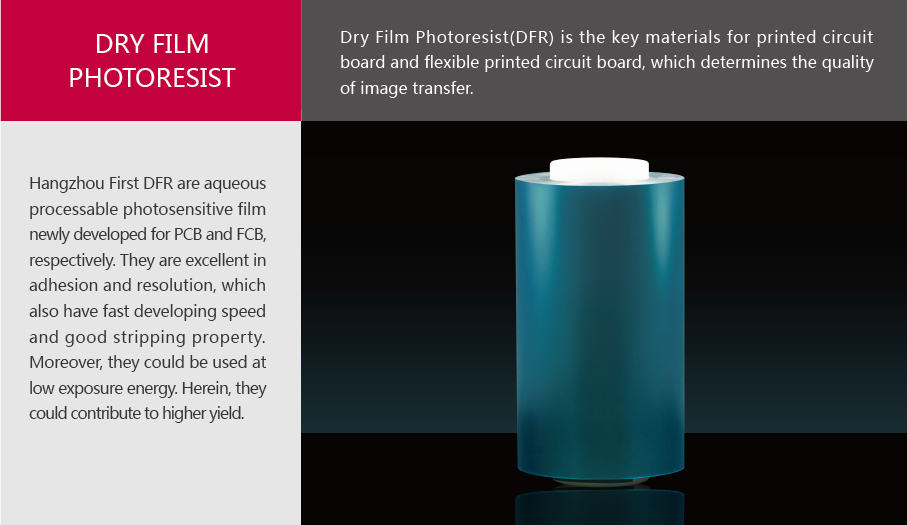 | High resolution DFR | FH-1525 | 23±1 | √ | √ | √ | High resolution & adhesion; No sludge and low precipitation | |