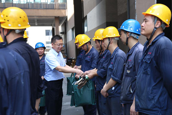 連日高溫,驕陽似火,為做好高溫季節防暑降溫工作,切實保障一線職工的安全健康,有效促進企業生產經營和重點工程建設,8月11日,臨安區總工會勞動部部長錢鳴鳳、街道工會主席傅賢軍一行人來到福斯特,為在高溫下堅守一線崗位的職工送去了黨和政府以及工會組織的關懷慰問,為公司職工送來了夏日清涼。
