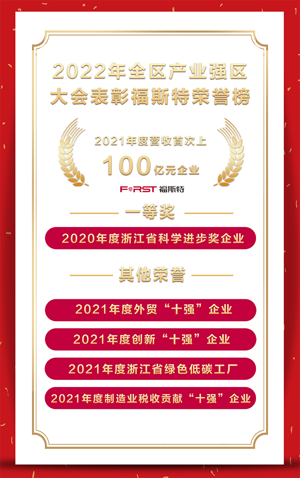 里程碑 | 福斯特營業收入首次突破“百億”,獲全區產業強區大會表彰!