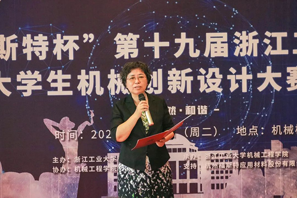 首先,虞曉芬校長上臺致辭。她指出大學生機械創新設計大賽有利于加強教育與產業之間的聯系,將推進科學技術轉化為生產力。她希望更多青年學生積極投身我國機械設計與制造事業中,在我國從制造大國走向制造強國的進程中發揮積極的作用。