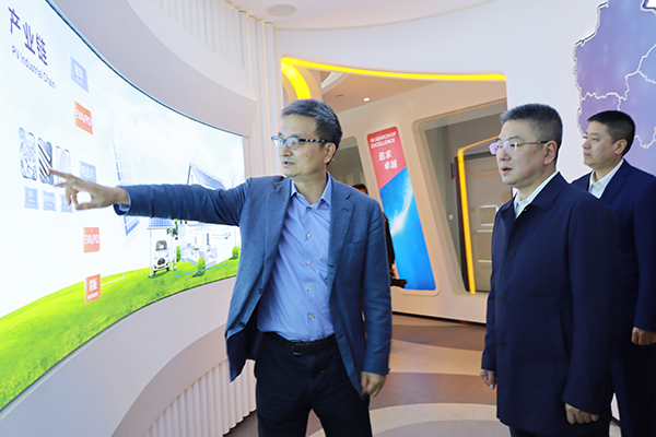 郎文榮一行先后參觀公司展廳、廠區及數字化車間,詳細了解公司發展歷程、企業規模、產品特性、綠色生產情況等。他對公司良好的發展態勢表示肯定,并指出福斯特作為光伏封裝膠膜的龍頭企業,要以技術創新賦能企業綠色發展,打造臨安新材料產業發展新標桿。