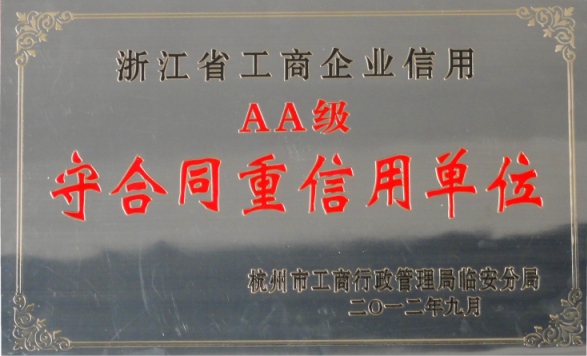熱烈祝賀福斯特榮獲浙江省工商企業信用AA級“守合同重信用單位”稱號。