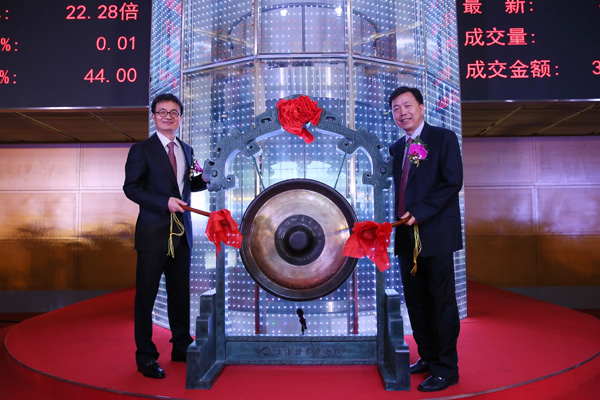 臨安市委書(shū)記張振豐與公司董事長(zhǎng)林建華共同鳴鑼開(kāi)市。