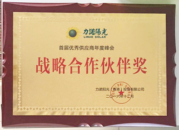福斯特榮獲2016年度力諾陽光戰(zhàn)略合作伙伴獎