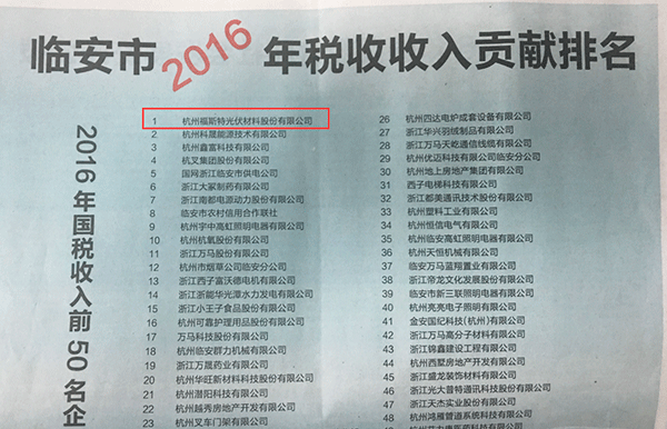 2016年,全市上下“干”字當頭、砥礪奮進。在市工信經濟良好發展的環境下,福斯特企業整體實力實現了穩步提升。公司主導產品EVA膠膜持續保持全球市場50%的占有率,產品與國內同行相比,具備先發優勢、質量優勢、技術優勢和品牌優勢;與國外同行相比,具備本土化優勢和規模化優勢。