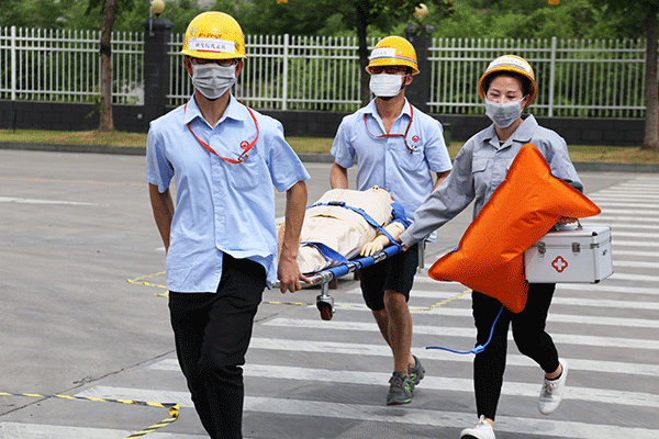 本屆賽事設中毒傷員現場急救、接力滅火、快速連接消防水打靶、提水負重速跑四大項目。比賽各個環節緊張有序地進行,這是一次福斯特人團隊配合和默契度的大比拼,也是一次對員工消防知識技能和實戰能力的大檢驗。經過3個小時的激烈競賽,維修車間代表隊最終奪得本屆賽事團體冠軍。