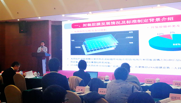由杭州福斯特應(yīng)用材料股份有限公司作為主編單位的《T/CPIA 0004-2017光伏組件封裝用乙烯-醋酸乙烯酯共聚物(EVA)膠膜》和《T/CPIA 0006-2017光伏組件封裝用共聚烯烴(PO)膠膜》是其中重要兩項(xiàng)。公司副總經(jīng)理周光大博士應(yīng)邀對兩項(xiàng)標(biāo)準(zhǔn)制定過程、性能指標(biāo)、標(biāo)準(zhǔn)意義進(jìn)行了詳細(xì)解讀。其中,PO膠膜標(biāo)準(zhǔn)填補(bǔ)了全行業(yè)空白,有力扭轉(zhuǎn)了當(dāng)前PO膠膜產(chǎn)品先行而標(biāo)準(zhǔn)缺失的局面;EVA膠膜標(biāo)準(zhǔn)則是在2013版國標(biāo)的基礎(chǔ)上,大幅增加了產(chǎn)品長期可靠性、電性能安全性、白色EVA等產(chǎn)業(yè)前沿內(nèi)容。