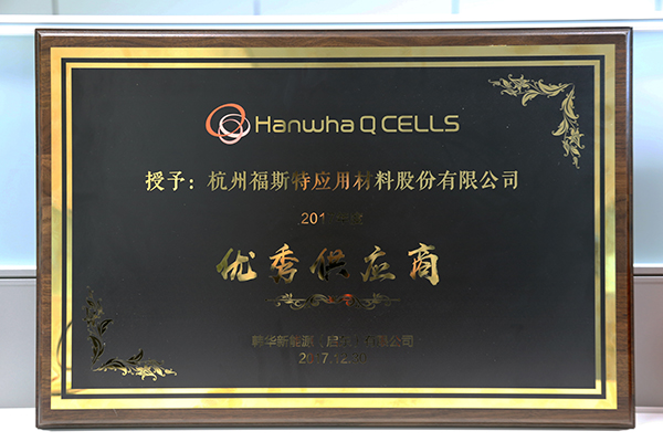 日前,福斯特榮獲韓華新能源(啟東)有限公司、無錫尚德太陽能電力有限公司2017年度優秀供應商獎項。