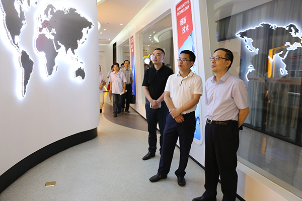 孫璧慶主任一行在公司相關負責人的陪同下首先實地考察了公司生產車間和展覽館。孫主任對福斯特產品研發及企業發展方向給予了充分肯定。希望福斯特繼續保持主導產品為光伏封裝材料EVA太陽能電池膠膜的全球市場占有率,加強產品研發、配方改良、生產線設計、設備制造、客戶端應用等方面能力。