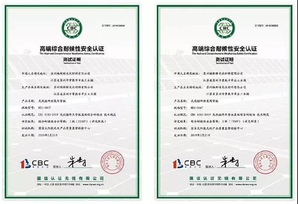 至今,福斯特氟涂層背板累計(jì)出貨超一億平米,電站客戶端質(zhì)量零投訴,F(xiàn)-氟涂層技術(shù)值得行業(yè)信賴。FIRST?透明背板均通過(guò)國(guó)家光伏質(zhì)檢中心(CPVT)、TUV等第三方測(cè)試認(rèn)證,產(chǎn)品質(zhì)量監(jiān)管嚴(yán)格。